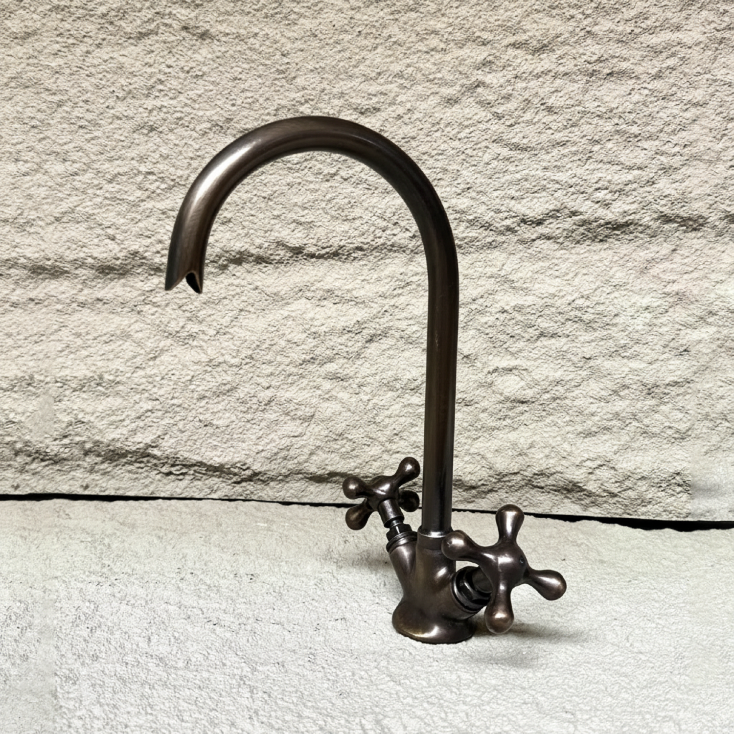 Designed for classic and transitional bathrooms, this solid brass faucet features a high-arc gooseneck spout paired with traditional cross handles. The oil-rubbed bronze finish adds warmth and depth, creating a refined statement while remaining practical for daily use.